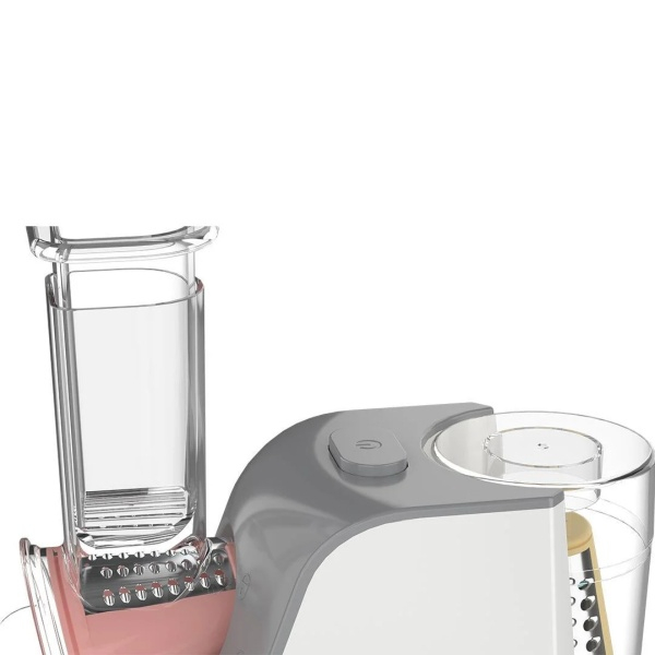 • 5 accesorii multifunctionale: include un tambur pentru feliere, unul pentru tăiere fină, unul pentru legume tari și un accesoriu de împingere — perfecte pentru varietatea de ingrediente.