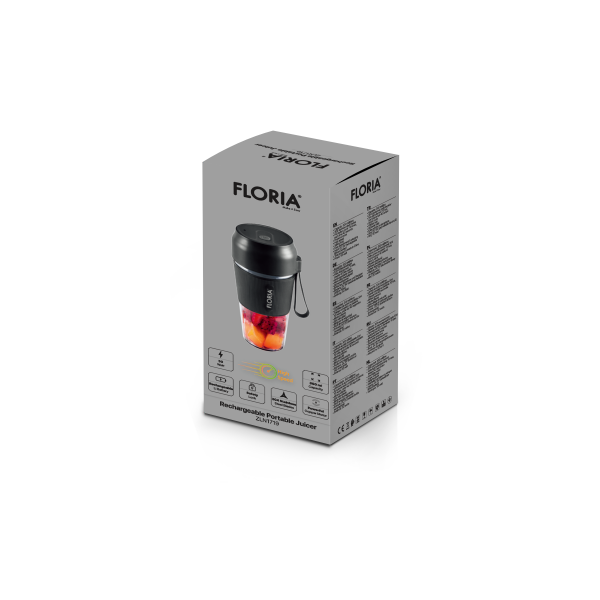 Aparatul portabil Floria ZLN1719 se foloseste pentru a blenda si toca fructe si legume pentru a le transforma in suc. Recipientul aparatului are capacitate de 300ml si este construit din plastic. Pentru o protectie sporita, aparatul nu porneste daca recipientul nu este montat. Lamele aparatului sunt din otel inoxidabil 304.