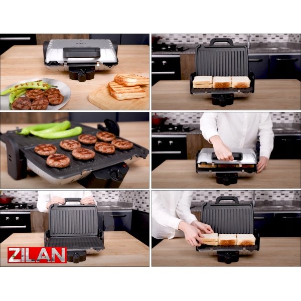 Gratar electric, putere 1600 W, termostat reglabil, placi antiaderente.