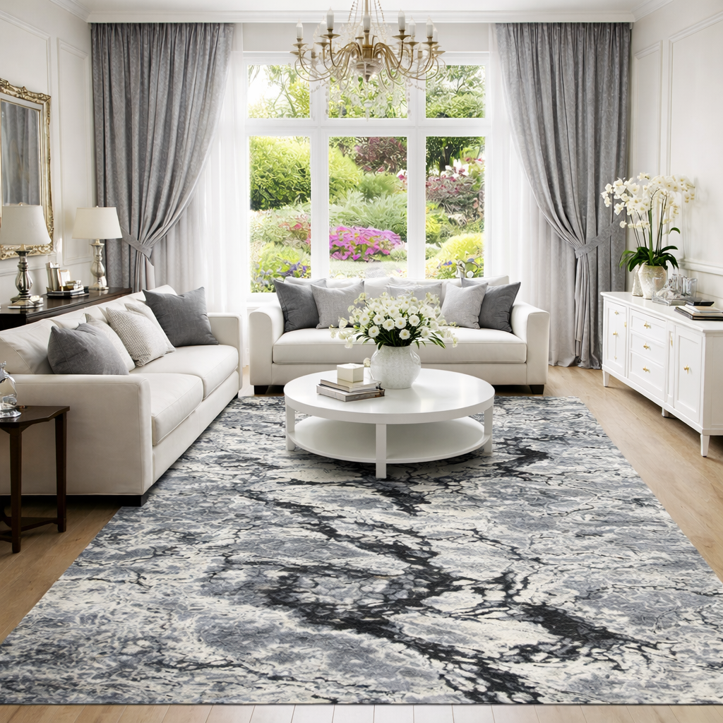 Covorul modern Storm aduce un plus de dinamism și eleganță în orice încăpere prin modelul abstract și combinația modernă de gri . Designul său creează un efect vizual deosebit, ideal pentru interioare contemporane.