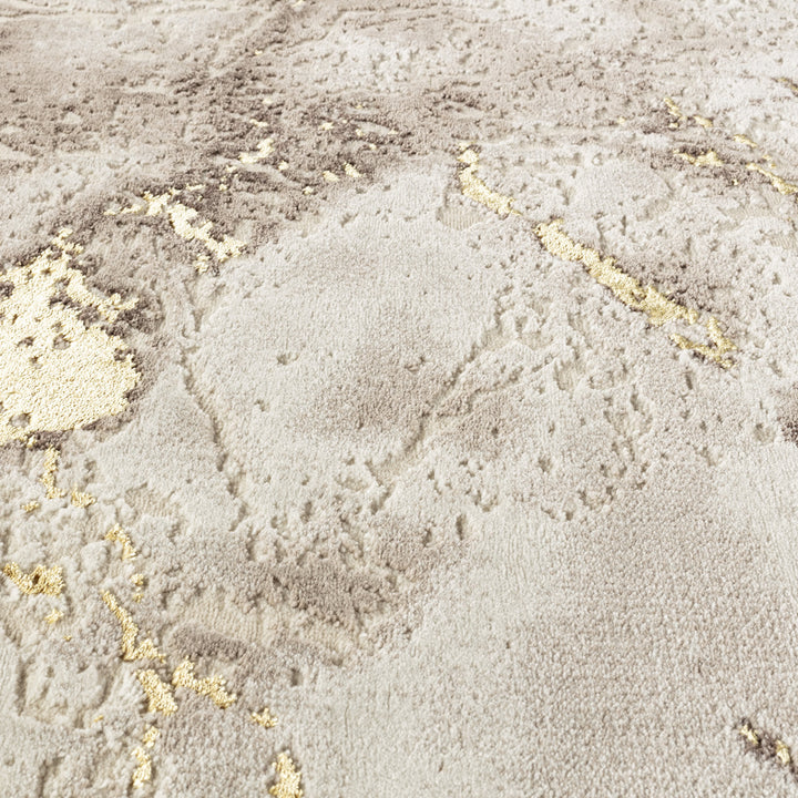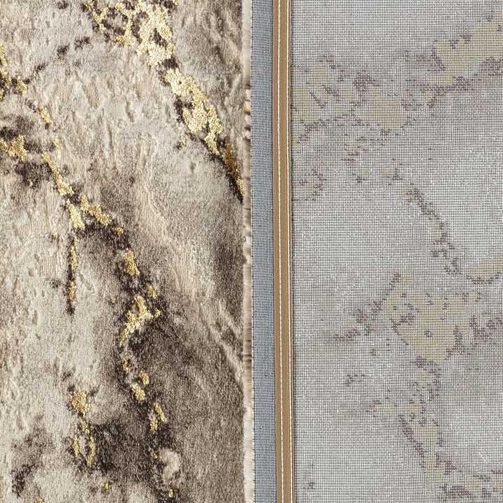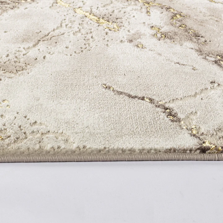 Covorul Modern Marmara Bej Auriu aduce eleganța și luxul în orice cameră. Designul abstract cu nuanțe calde de bej, auriu și maro creează o atmosferă sofisticată, perfectă pentru livinguri moderne sau clasice.