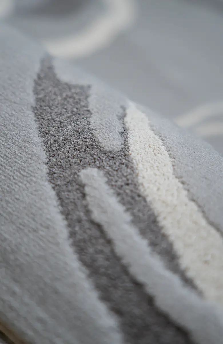 Covorul Gloria Silver Flow se evidențiază printr-un design abstract inspirat din forme fluide și texturi naturale, realizat în nuanțe elegante de gri și accente argintii deschise. Modelul creează un efect vizual modern și dinamic, aducând profunzime și stil oricărui spațiu.