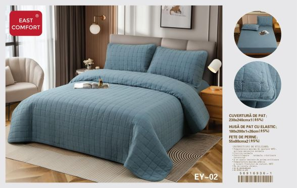 Setul este ideal pentru pat matrimonial, fiind potrivit atât pentru uz zilnic, cât și pentru decorarea patului într-un stil curat și ordonat.