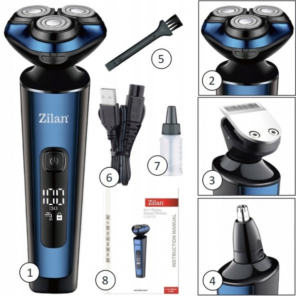 4 capete de utilizare - Aparatul de ras Zilan ZLN8726 are in dotare 3 capete diferite si o adaptare pentru unul dintre capete