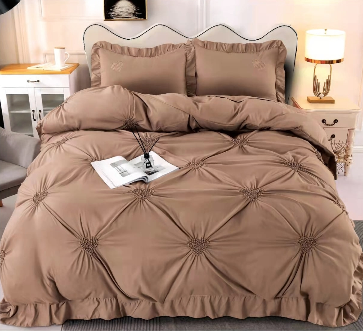 Lenjerie de pat cu pliuri, maro
