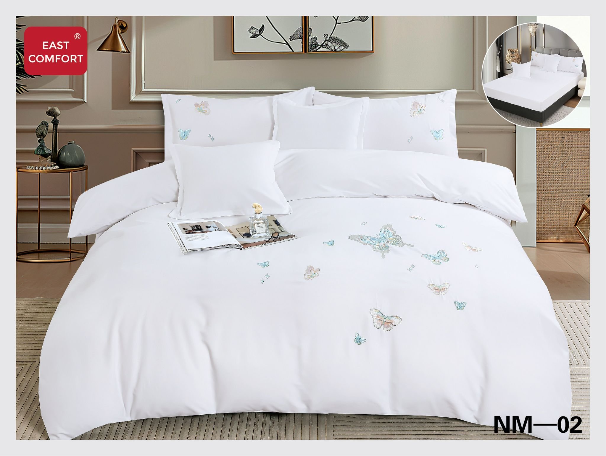 Lenjerie de pat brodata, cu elastic, bumbac satinat, nm 02