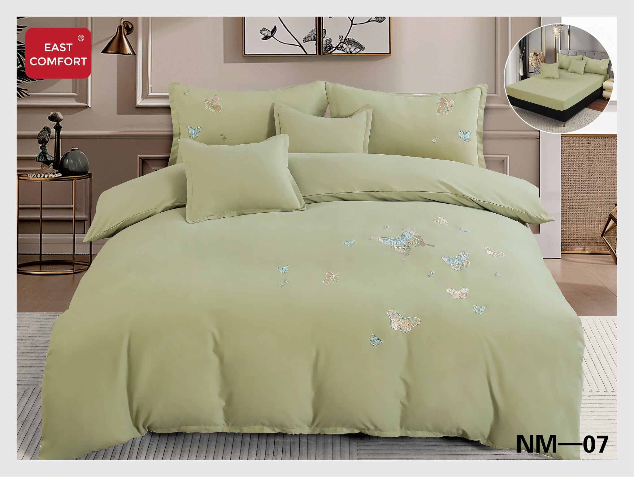 Lenjerie de pat cu broderie, cearșaf cu elastic, nm 07