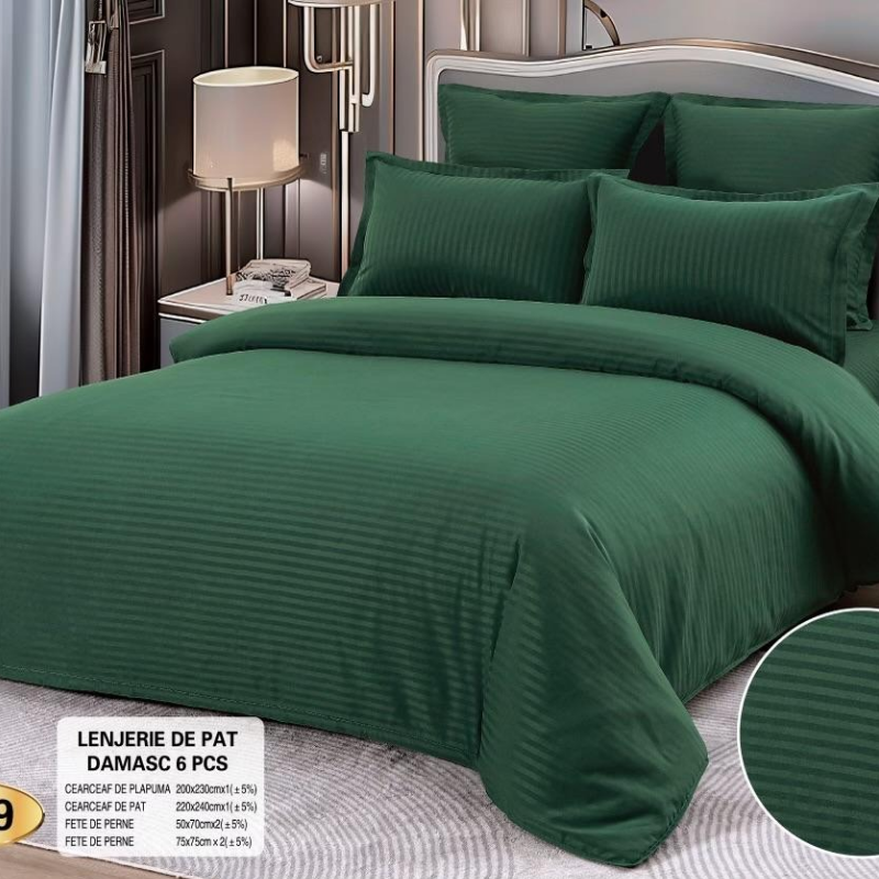 Adaugă un plus de eleganță și rafinament dormitorului tău cu lenjeria din damasc de calitate superioară. Realizată din bumbac 100%, această lenjerie impresionează prin textura sa fină și modelul delicat, oferind un confort deosebit și un aspect sofisticat. Materialul de damasc este renumit pentru durabilitate și pentru capacitatea sa de a păstra prospețimea și delicatețea chiar și după multiple spălări.