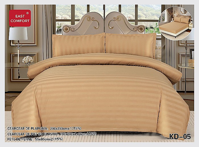 Lenjerie de pat, tip damasc, cearșaf cu elastic, kd 05