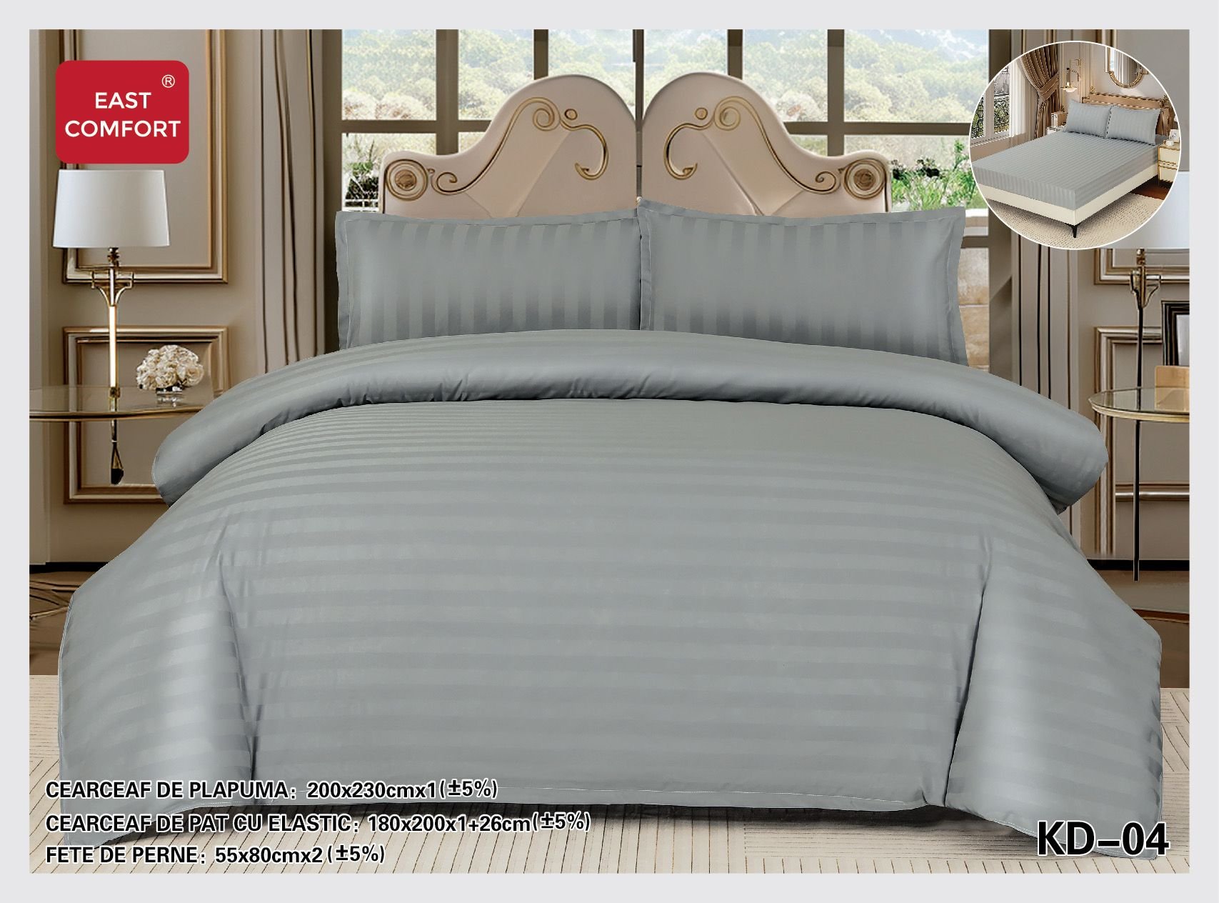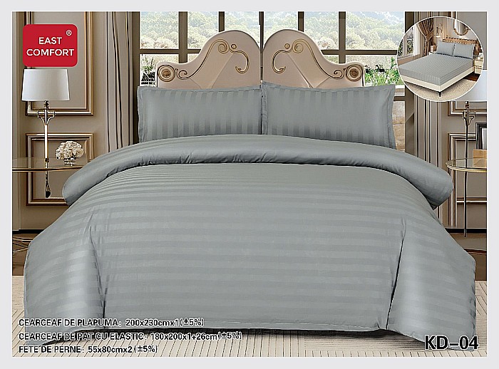 Lenjerie de pat, tip damasc, cearșaf cu elastic, kd04