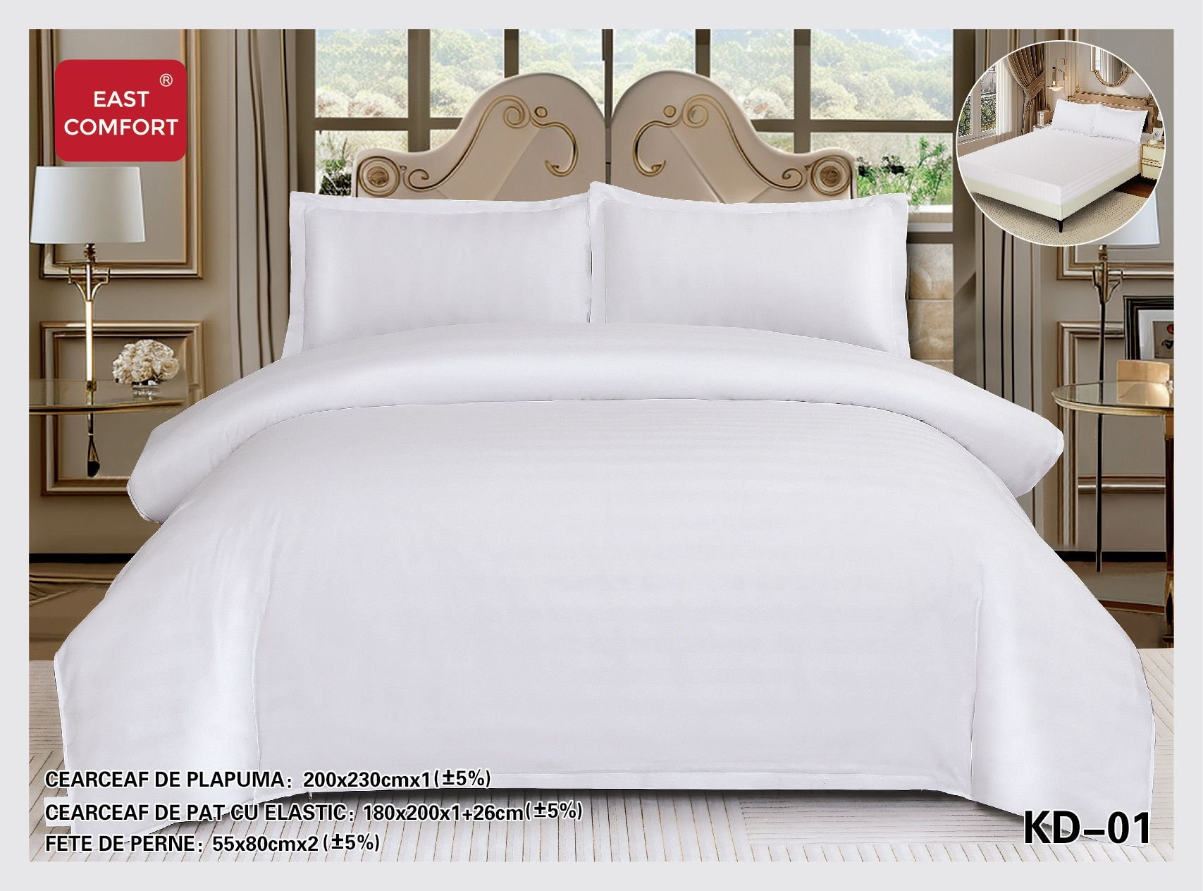 Lenjerie de tip damasc, cearșaf elastic, alb 01