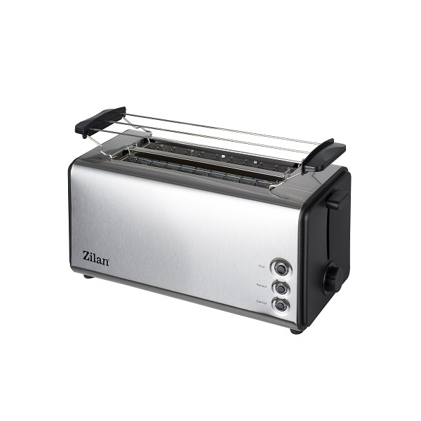 Prajitor de paine dublu Zilan, cu corp din inox, cu 2 fante pentru 4 felii, 6 grade de rumenire ajustabil. Dotat cu functie de oprire automata, decongelare, reincalzire, lumini display si tava pentru firimituri. Caracteristici : - Tensiune / frecventa de alimentare : 220-240 V 50-60 Hz.; - Putere : 1300 W.