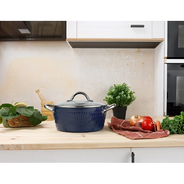 Oala cu capac Zilan ZLN9617 diamond, cu baza de inductie, ceramica si inox, usor de spalat, 24 cm,4L